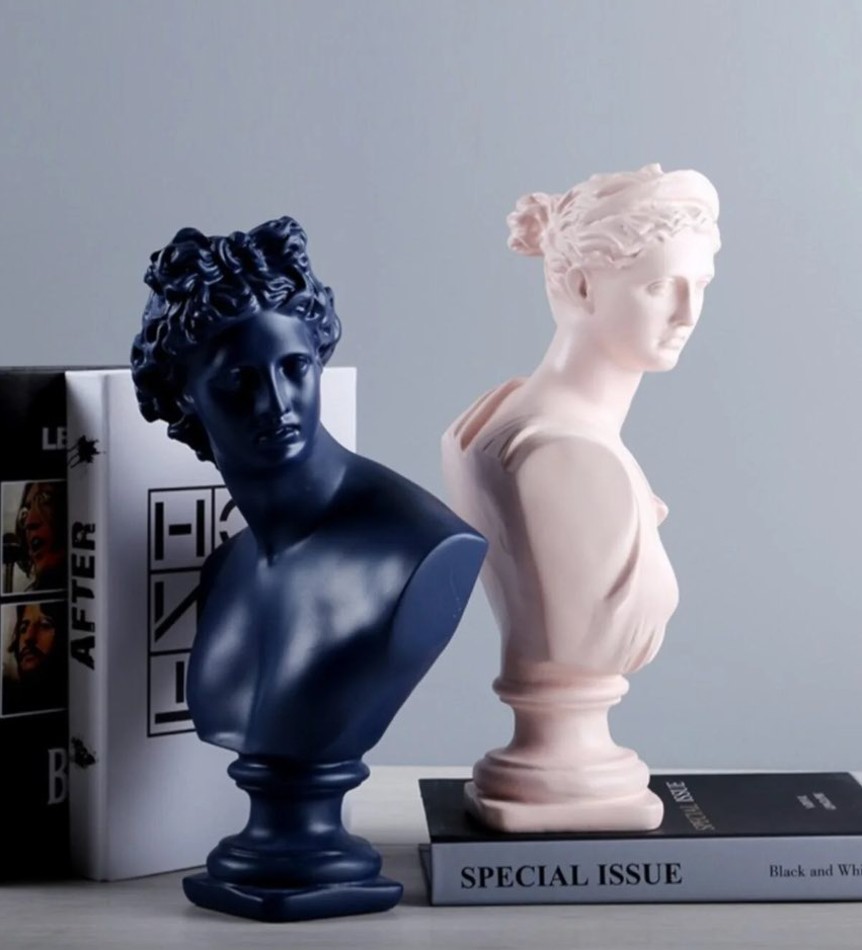 Yüksek kaliteli işçilikle hazırlanan bu mitolojik büst seti, klasik sanatın zarafetini modern mekanlara taşıyor. Kitaplıklarda simetrik kullanım için ideal olan bu parçalar, çalışma odalarından salonlara kadar her alanda seçkin bir zevkin yansımasıdır. Antik Yunan sanatı tutkunları için vazgeçilmez bir koleksiyon parçası.