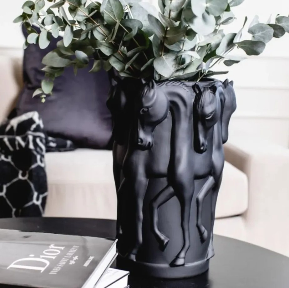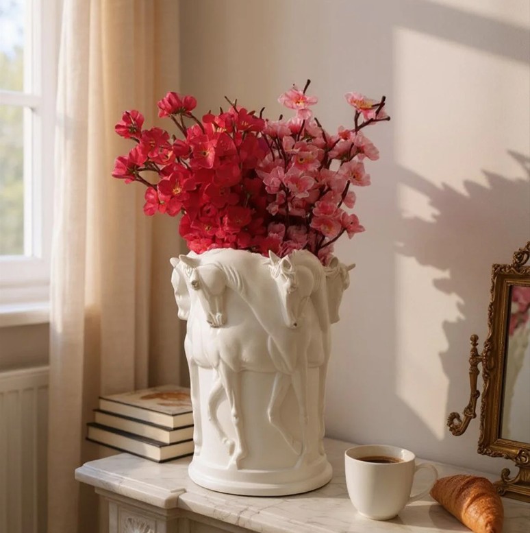 At figürlü vazo, dekoratif vazo modelleri, modern ev aksesuarları, lüks salon dekorasyonu, seramik at heykel vazo, tasarım çiçek vazosu, ev hediyesi fikirleri.