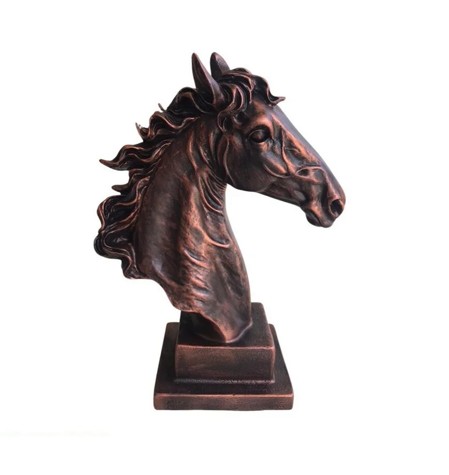 Gücü detaylarda keşfedin. At kafası büstü, asil duruşu ve keskin hatlarıyla girdiği her mekanda anında ağırlığını hissettirir. Sadece bir dekorasyon objesi değil; başarının, özgürlüğün ve sarsılmaz bir iradenin sembolü olarak masanızda yerini alır.