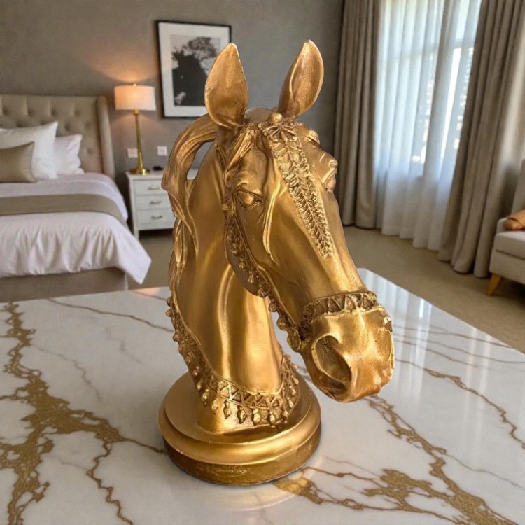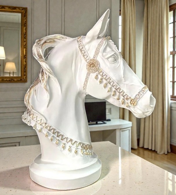 Modern sanat çizgilerini taşıyan bu dekoratif at büstü, geniş dresuarlar, makam masaları ve giriş holleri için benzersiz bir seçimdir. Gücü ve başarıyı temsil eden formuyla hem motivasyonunuzu artırır hem de mekanın lüks algısını anında bir üst seviyeye taşır.