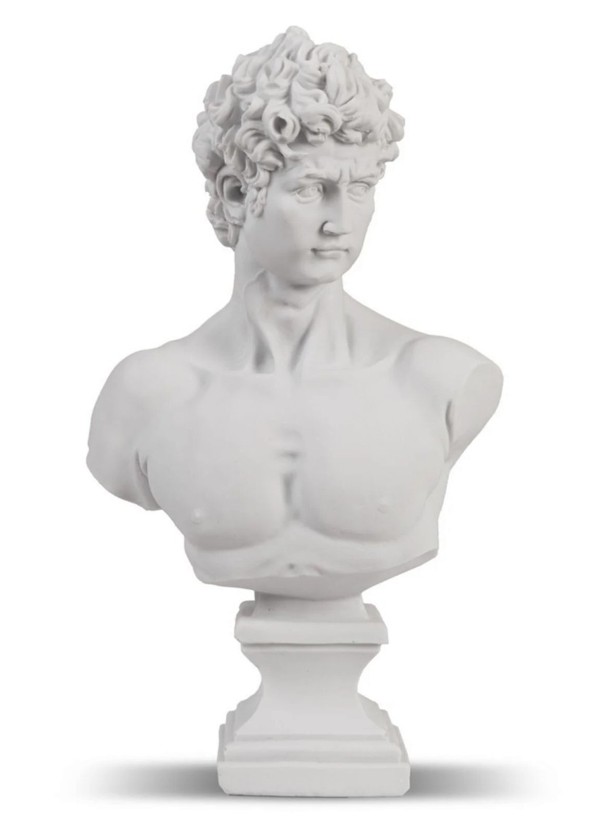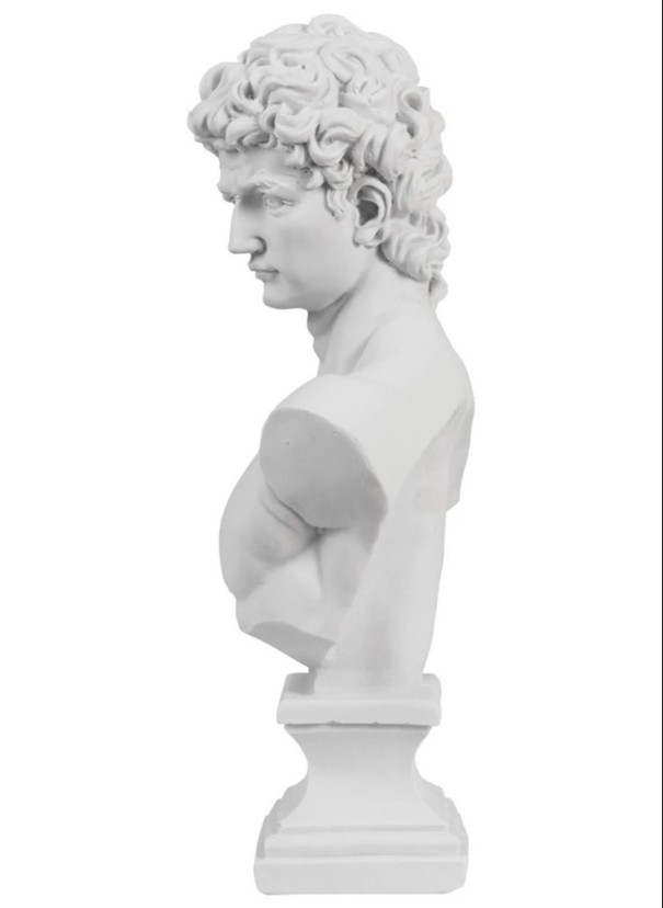 Michelangelo'nun ölümsüz eseri David büstü, saf beyazın zarafetiyle yeniden hayat buluyor. 42 cm'lik heybetli boyutuyla bu kaideli büst, sadece bir dekorasyon objesi değil; insan formunun, kararlılığın ve estetik mükemmeliyetin sembolüdür.