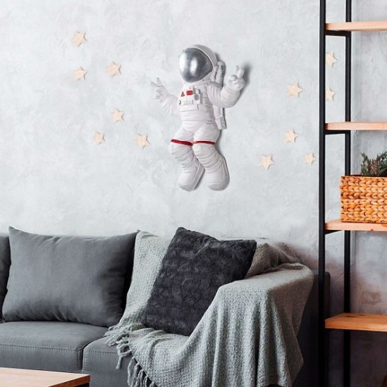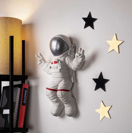 Astronot duvar dekoru, çocuk odası duvar süsü, uzay temalı oda dekorasyonu, büyük boy astronot biblo, 3D duvar heykeli, erkek çocuk odası aksesuarları, astronot figürlü biblo, dekoratif duvar objeleri.