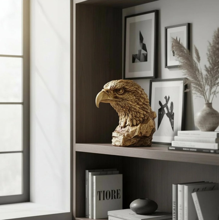 Kartal Başı Büstü Nereye Konulmalıdır? Enerjiyi odaklamak için çalışma masasının tam karşısına veya giriş holünde göz hizasındaki raflara yerleştirilmelidir. Bu, mekana giren kişiye güç ve güven mesajı verir.