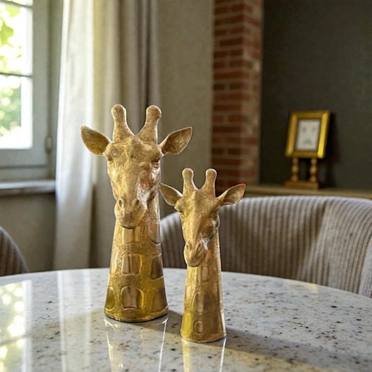 Egzotik Bir Dokunuş: İkili Zürafa Kafası Heykel Seti